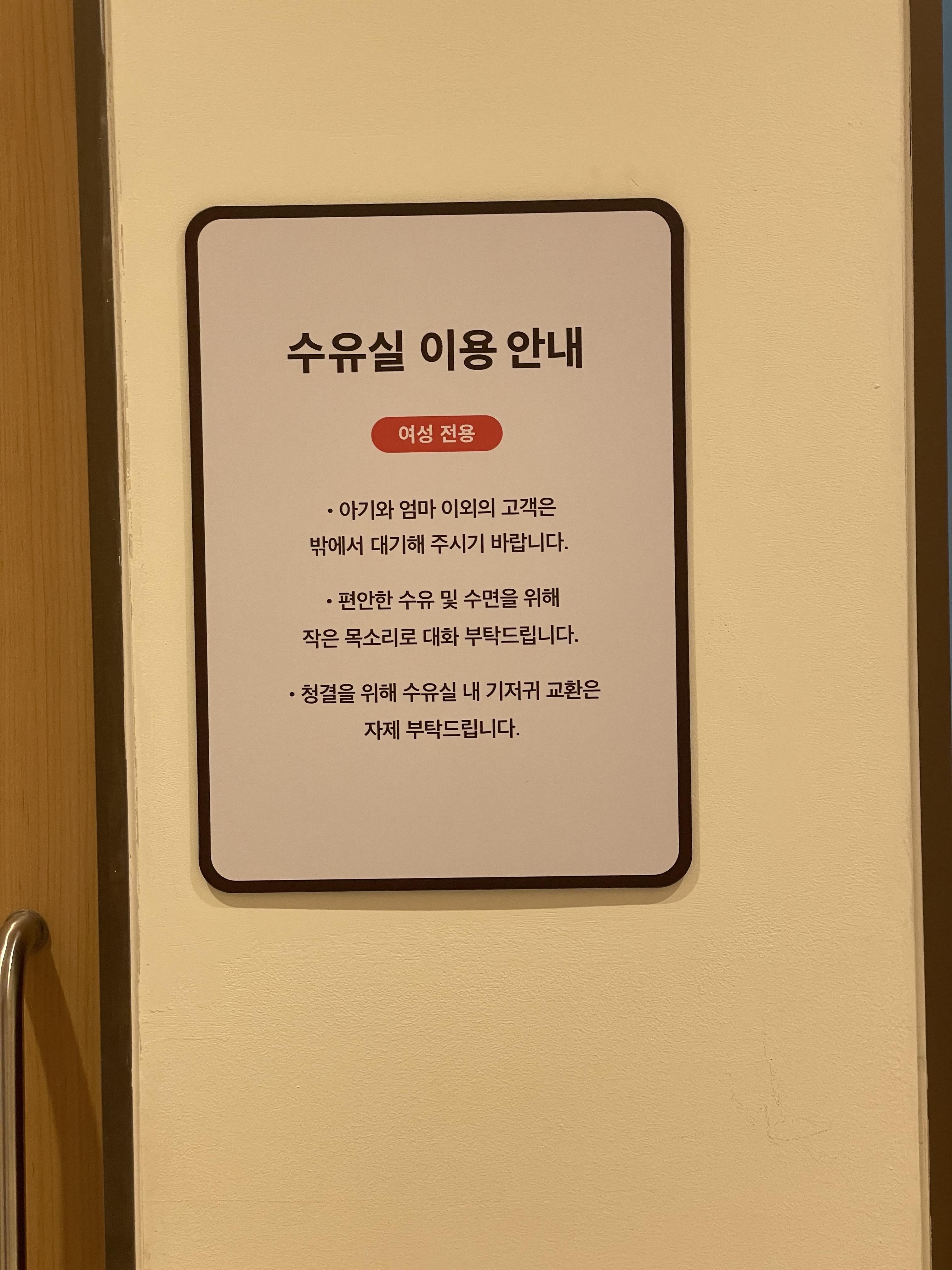 그 위치로 가시면 이렇게 작게 모유수유실 아이콘이 보이는데요! 앞으로 가면 바로 짜잔- 아래처럼 크게 유아 휴게실의 안내 표지판이 보입니다!