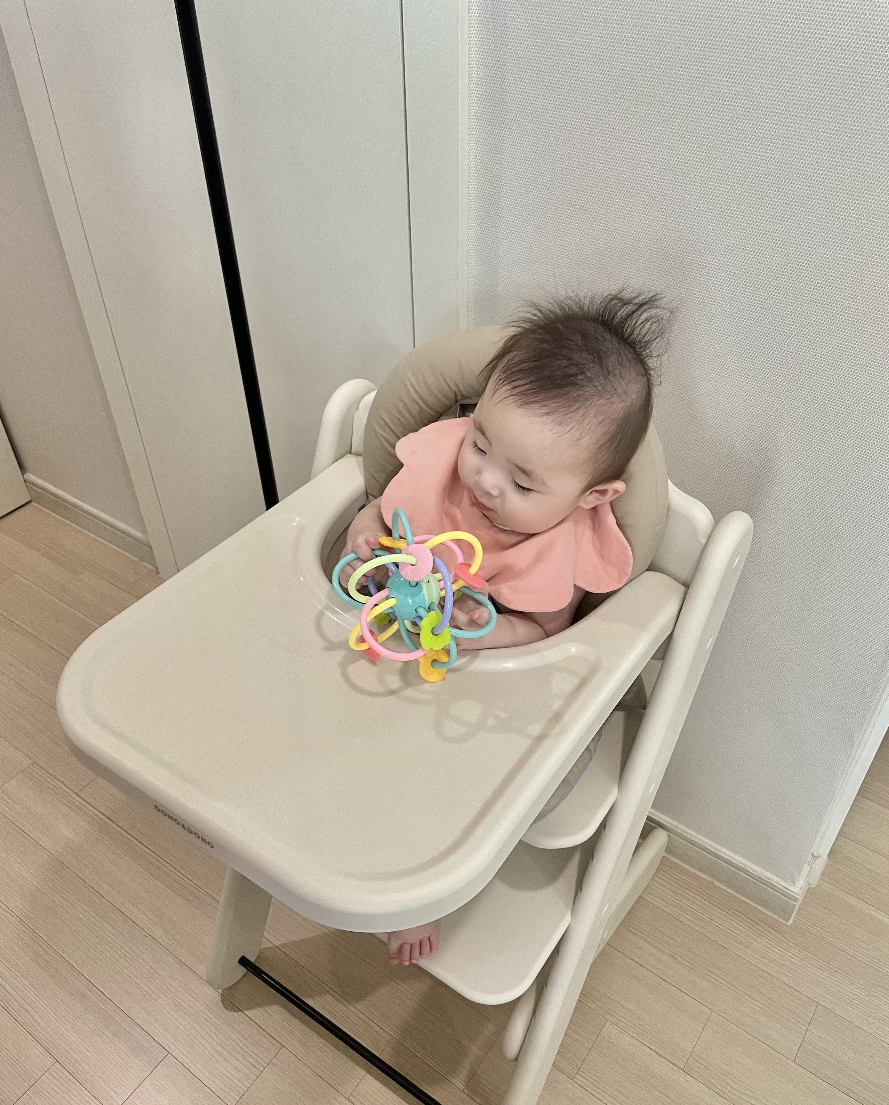 도노도노 하이체어는 이유식먹일 때 말고도 앉혀서 장난감을 주고 놀게 해도 잘 사용할 것 같더라구요! 다만 식판이 있다보니 앉힐때 아가를 보행기 태우듯이 안고 다리를 하나씩 넣어줘야하는데 조금 버거울 때도 있더라구요 ㅋㅋㅋ하지만 맘카페에서 찾아보니 도노도노 하이체어만 가지고 있는 단점이 아닌 이렇게 생긴 하이체어들은 다 그런거 같아서 그냥 그런가 보다 하고있습니다